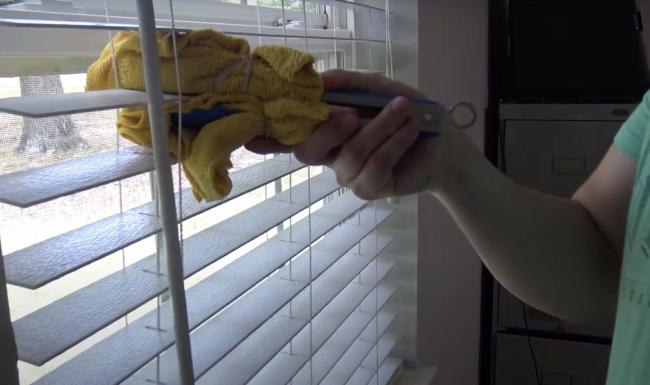 - Промойте тряпку и повторите процедуру, чтобы полностью избавиться от грязи и пыли на ламелях.