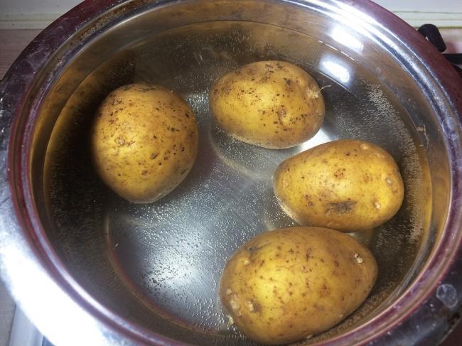 Для начала отвариваем необходимые овощи. Это, конечно, картофель. Варим картофель в мундире до мягкости, проверяя вилкой.