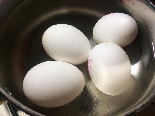 Параллельно отвариваем вкрутую несколько яиц. Вкрутую – это 6 минут после закипания, ничего сложного. Количество ингредиентов придётся рассчитывать на глаз. Погрешности допустимы.