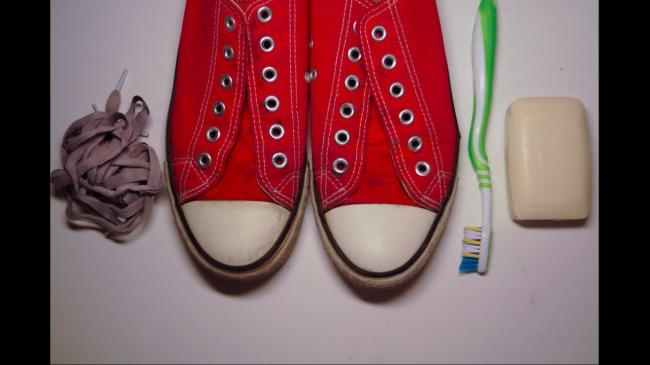 При стирке не все пятна выстирываются. Избавиться от старой грязи со спортивных тапочек помогут:
