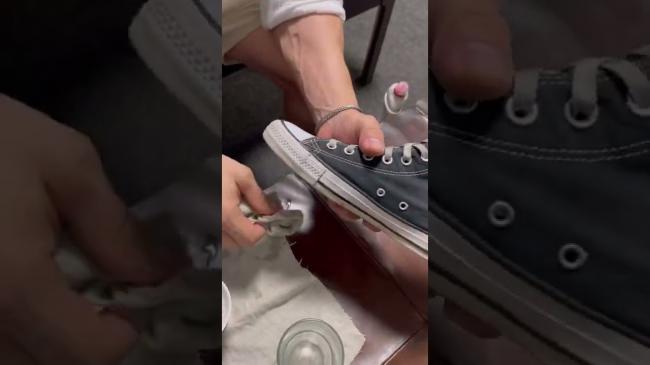 - Кеды марки CONVERSE начинайте чистить смесью соды и уксуса (из расчета 2:3). Распределите пасту внутри и снаружи обуви, потрите щеткой и сполосните прохладной водой (свести темные отметины или чернила поможет жидкость для снятия лака с ацетоном). Затем «Конверсы» можно смело закладывать в машинку и стирать при низкой температуре, без хлорсодержащих средств и отбеливателя.