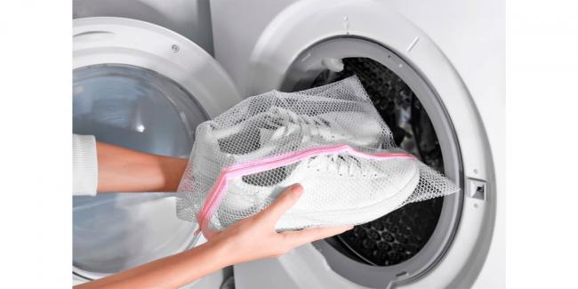 Подготовленную обувь убирают в мешок или чехол для стирки либо заворачивают в наволочку, чтобы не повредить барабан деталями кед. Кстати, каждое изделие можно положить в светлый старый носок.