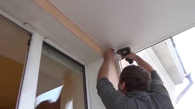 Если на балконе установлен подвесной потолок, перед креплением кронштейнов необходимо выполнить установку закладных брусков. При наличии натяжного потолка на месте крепления наклеивается скотч либо другой самоклеящийся материал, благодаря которому полотно не прорвётся в процессе выполнения монтажа.