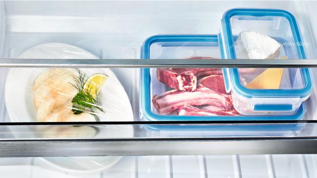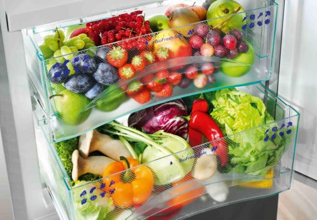 Например, сыры хранят в герметичной упаковке, а фрукты и овощи — в открытом виде.