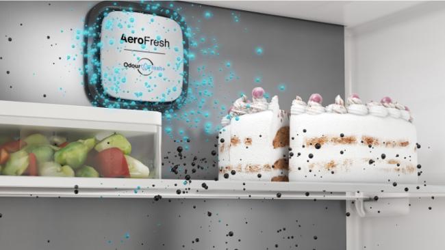 Технология OdourFresh+ помогает устранить неприятные запахи из холодильника с помощью ионизатора. Ионы кислорода с отрицательным зарядом присоединяются к молекулам, вызывающим запахи, и нейтрализуют их.