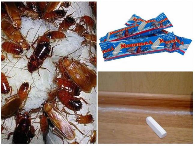 Если же в квартире имеется небольшая колония – мелки помогут. Кроме того, конкретно продукция «Машенька» отличается двойным инсектицидным эффектом, так как содержит два инсектицида. Состав мелков Машенька: