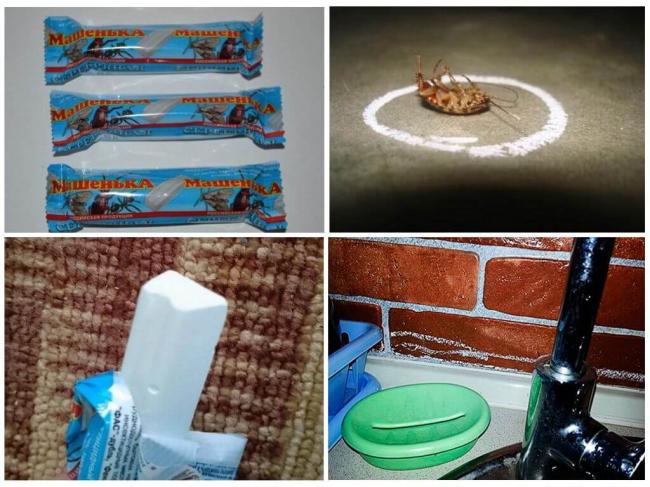 Итак, мелок «Машенька» может использоваться не только для проведения линий в квартире, пораженной вредными насекомыми. Это универсальное средство также нашло применение в порошкообразном и растворенном виде. Как только вы заметите, что в дом заглянули единичные особи-разведчики, берите белый брусочек, рисуйте защитный контур, чтобы не дать паразитам никакого шанса. Толченый препарат можно засыпать в щели и труднодоступные места, раствором облить комнатные растения и отстающие обои. Чем раньше вы возьметесь за дело, тем проще справитесь с нежеланными посетителями.