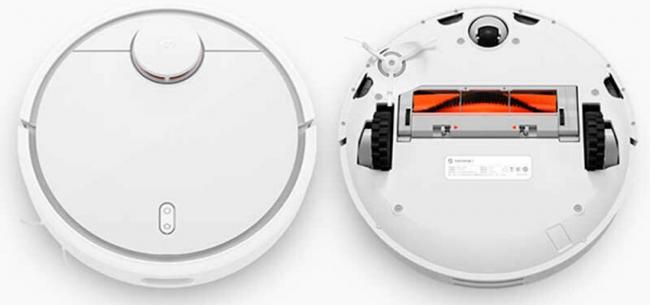 В «начинку» стандартного робота пылесоса Xiaomi входят аккумулятор, колеса, основная и боковые щетки, а также съемный контейнер для мусора. Большую часть вышеперечисленных деталей можно увидеть, если перевернуть устройство (предварительно отменив актуальные задачи по уборке помещения). Комплектация некоторых моделей также включает швабру для влажной уборки, хотя смачивать эту насадку приходится вручную, что вызывает у пользователей некоторый дискомфорт.