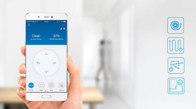 - Дистанционное управление: запуск и остановка уборки, изменение режима работы.