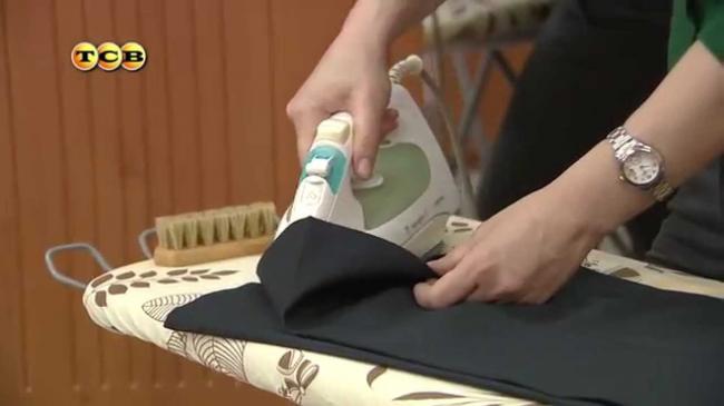 Вкладывают внутрь брюк сложенное полотенце или надевают на край доски.