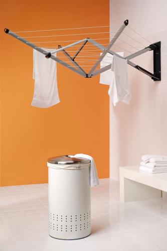 Модель итальянского производства, состоит из 6 пластиковых прутьев с рабочей длиной в 9,5 метров. Предусмотрена дополнительная функция: регулировка перекладин по высоте. Расположить одежду так, чтобы она быстрее высыхала, ещё удобнее. Длина сушилки средняя, 160 см, вес — 3,4 кг. Владельцы обычно довольны изделием и не находят существенных недостатков. Стоимость выше, чем у предыдущих моделей.