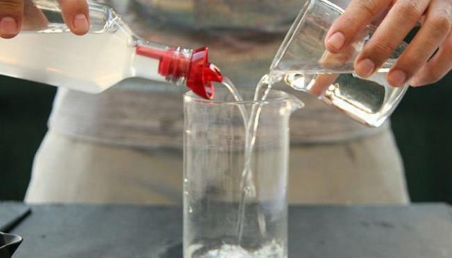 Осторожно добавьте одну чайную ложку 70% эссенции в стеклянную тару.