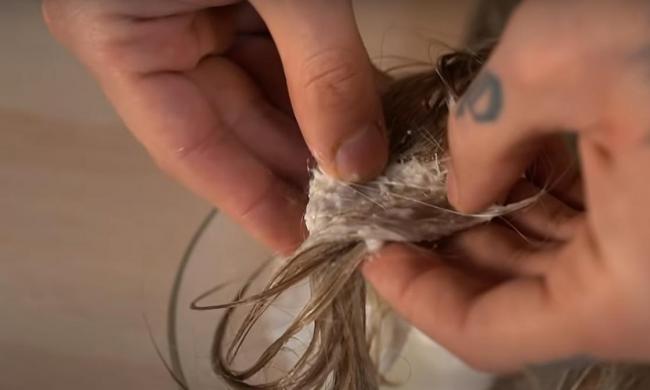 Далее понадобится осторожно ее удалить с волос.