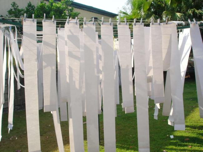 - По истечении указанного времени размотайте каждый рулон и проверьте полосу на наличие загрязнений.