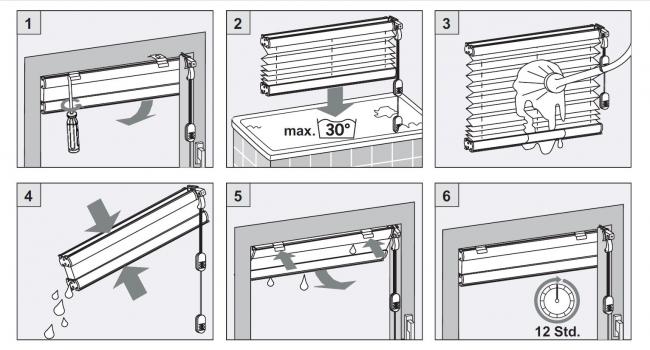 - Постиранные жалюзи нужно оставить высыхать естественным образом, при этом окна должны быть обязательно закрыты.