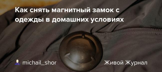 | Как снять с вещи магнит | 476 | Написать этот пост меня мотивировала не столько сама проблема решается достаточно просто и быстро , сколько заумные инструкции с просторов инета, которые могут быть трудновыполнимы или небезопасны. Особенно для хрупких девушек Итак, кратко, для ЛЛ: мне привезли с доставкой шуруповёрт. |