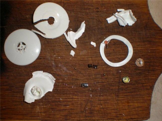 Делать это нужно осторожно, чтобы не повредить капсулы. После того как внутренняя часть детектора открылась, достаем из нее содержимое, включая пружину