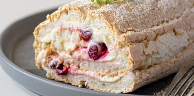 Нежный и в меру жирный маскарпоне прекрасно подходит для начинки меренгового рулета.