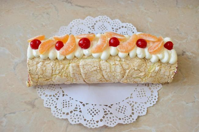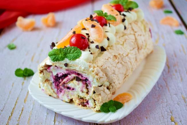Меренговый рулет рецепт приготовления в домашних условиях с творожным кремом и фруктами
