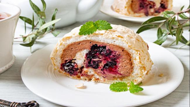 Меренговый рулет домашний со смородиной и шоколадным кремом