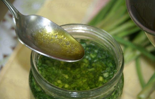 Сохранить в луке максимум полезных свойств, не прибегая к заморозке, вы сможете с помощью любого растительного масла. Подготовьте объемный контейнер и заполните его измельченной зеленью больше чем наполовину. Добавьте в емкость немного растительного масла и смешайте с луком. Сверху налейте еще немного масла, чтобы покрыть содержимое и закройте контейнер крышкой. Заготовку можно хранить в холодильной камере в течение 6 месяцев.