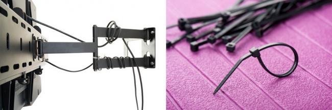В ситуации, когда вам нужно временно защитить и спрятать кабели, а вы не можете просверлить стену, купить чехол или установить декоративные панели, вы можете использовать наиболее доступное решение: специальные кабельные стяжки.