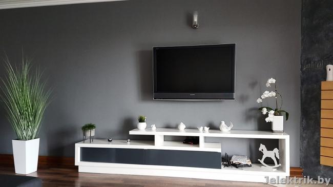 Концы проводов нужно соединить по соответствующей схеме с розеткой. Затем ее нужно установить в специально отведенное место. Заделывать штробы следует гипсовой штукатуркой. Последний этап – финишная отделка. Установите кронштейн, а также зафиксируйте на нем телевизор. Подключите к ТВ все провода.
