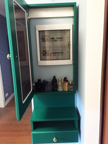 Можно поставить небольшой шкафчик, который гармонично впишется в интерьере. Помимо декорирования аппарата, шкаф будет выполнять и свою основную функцию – хранение разной мелочевки. Доступ к счетчику также не будет затруднен.