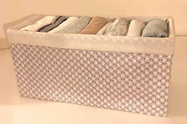 Текстильные коробки как система хранения очень удобны и функциональны: их можно поставить на полку в шкафу, положить в них одежду, белье, полотенца. Я часто использую такие коробки для хранения швейных и текстильных изделий. На его пошив у меня ушло около 10 минут, я использовала остатки ткани, поэтому можно сказать, что это самый экономичный и быстрый вариант создания системы хранения, которая позволит вам хранить все необходимое аккуратно и опрятно.