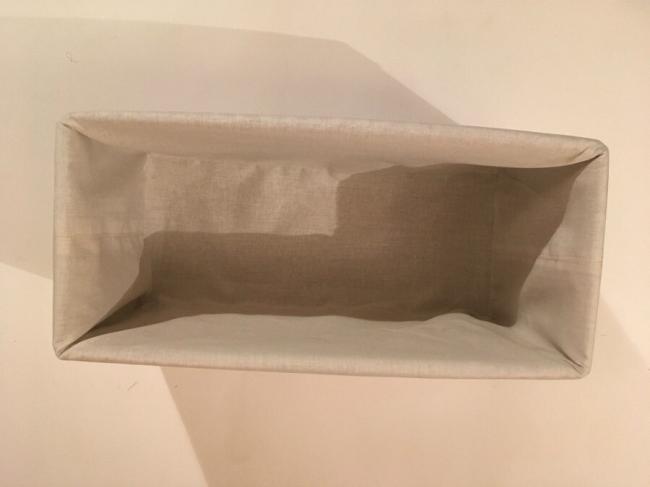 - Внешняя часть. Стачать швы по аналогии соединения деталей подкладки. Затем во внешний готовый короб вставить внутренний и скрепить их по верху булавками.