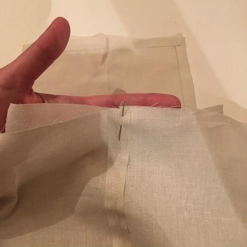 Наметайте крупными стежками и проложите по краю с одной и другой стороны строчки – так проще будет сшивать изделие.
