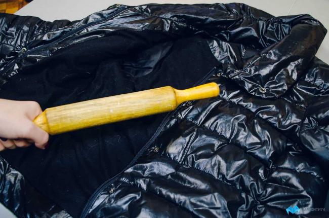 Разложите вещь на горизонтальной поверхности, чтобы кусочки набивки не сползали вниз. Разбейте их руками. Оставьте на некоторое время. Периодически проводите встряхивание пуховика, его взбивание при помощи хлопушки для выбивания пыли из ковровых покрытий и паласов.