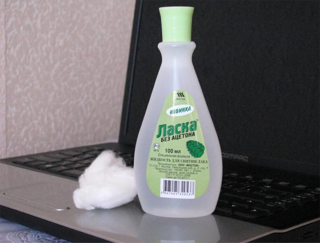Для ноутбука можно попробовать жидкость для снятия лака без ацетона, а для стиральной машинки подойдут большинство вариантов, ведь такую технику можно отмыть от масла и других средств.