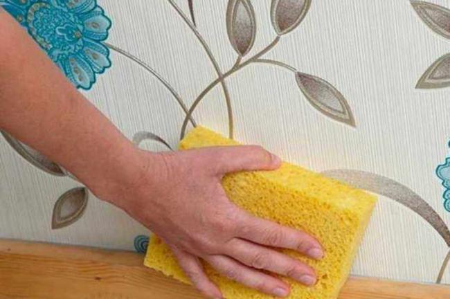 - Полученным раствором смочите чистую губку и обработайте испачканный участок обоев. Не трите долго на одном месте во избежание появления потертостей и катышков.