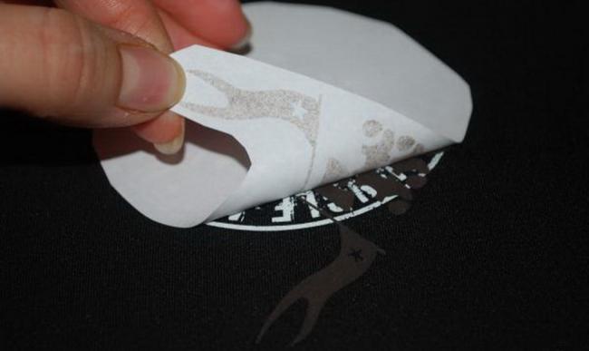 - Утюг. Одежду кладут на ровный стол или гладильную доску. Под надпись или изображение помещают лист бумаги. То же самое проделывают с лицевой стороны надписи. Утюг ставят на максимальную температуру и проглаживают им наклейку до тех пор, пока она не сойдет на бумагу.