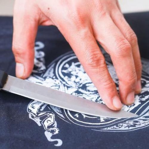 После того, как наклейка размягчится, ее необходимо аккуратно при помощи ножа соскрести, начиная с краев. Подобную процедуру с утюгом и ножом стоит повторять до тех пор, пока не удастся удалить термонаклейку с одежды. Когда получится достигнуть результата, на материале может остаться клей. Удалить его легко при помощи специального средства для удаления клея или спирта. Прежде чем использовать средство, его следует протестировать на незаметном участке одежды.