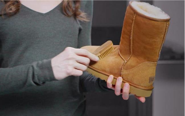 - сухую поверхность замшевых ботинок очистить от грязи и пыли можно, используя двустороннюю щётку;