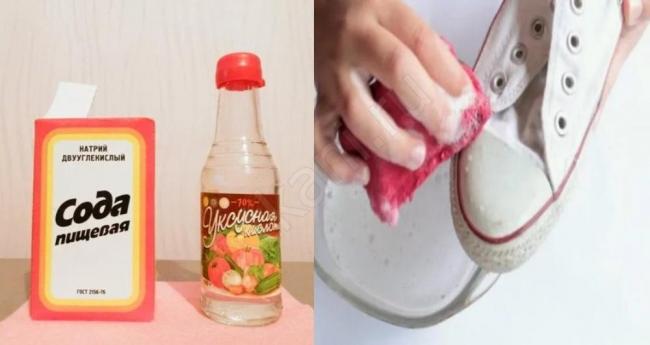 Убрать желтизну с кроссовок после стирки помогут сода и уксус: