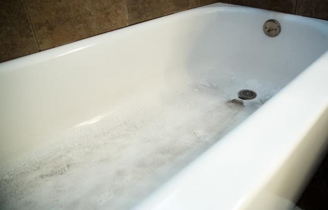 - Когда реакция прекратится – промойте ванну теплой водой.