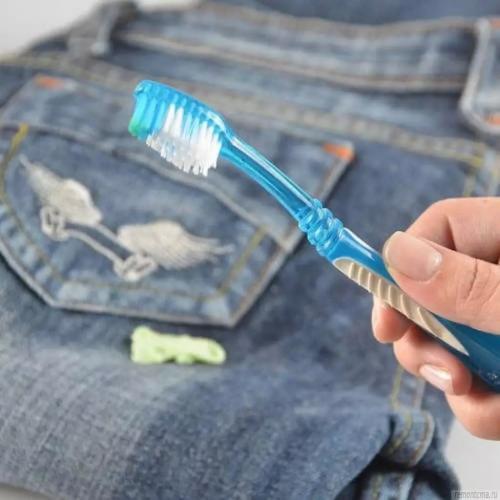 - Если ткань позволяет, замочите одежду в горячей воде и через несколько минут попытайтесь отчистить жвачку с помощью зубной щетки.