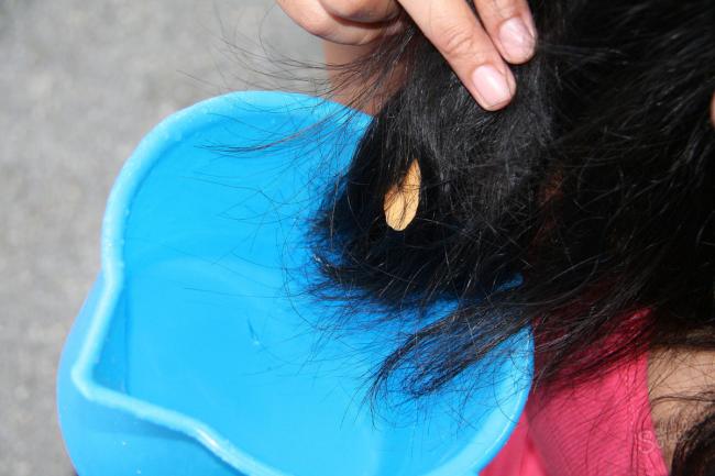 После такой процедуры волосы нужно несколько раз промыть, используя много шампуня, чтобы на волосах не осталось жирных следов. Избавиться от неприятного жирного запаха можно при помощи ополаскивания волос уксусной водой