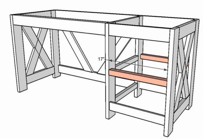 3) Ход конем: На старую столешницу громоздим новую, через боковые проставки нужной высоты. В получившийся ящик удобно прятать клавиатуру, чипсы и стакан.