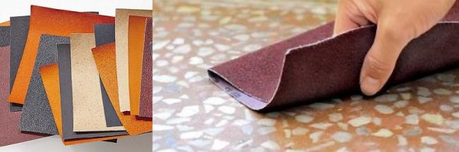 Для работы понадобится гель для очищения, пищевая сода и наждачная бумага с мелким зерном. Средство наносится на поврежденный участок. Поверхность аккуратно обрабатывается наждачной бумагой до полного устранения дефекта. По окончании всю столешницу обработать раствором для выравнивания цвета, сполоснуть чистой водой.
