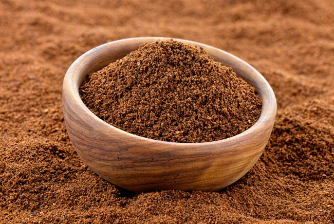 - В таз с крутым кипятком добавить молотый кофе. Раствор должен получиться очень крепким.