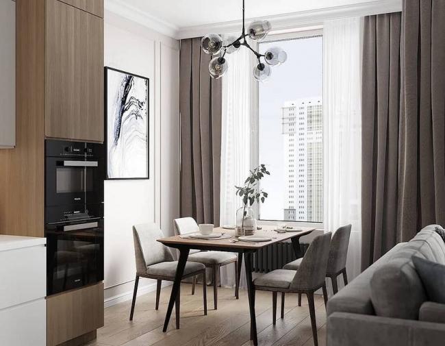 Комфортная обеденная зона в стиле минимализм уравновесила интерьер лофт