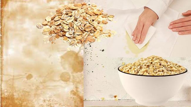 Овсяные хлопья, измельченные в кофемолке, поглощают остатки масла