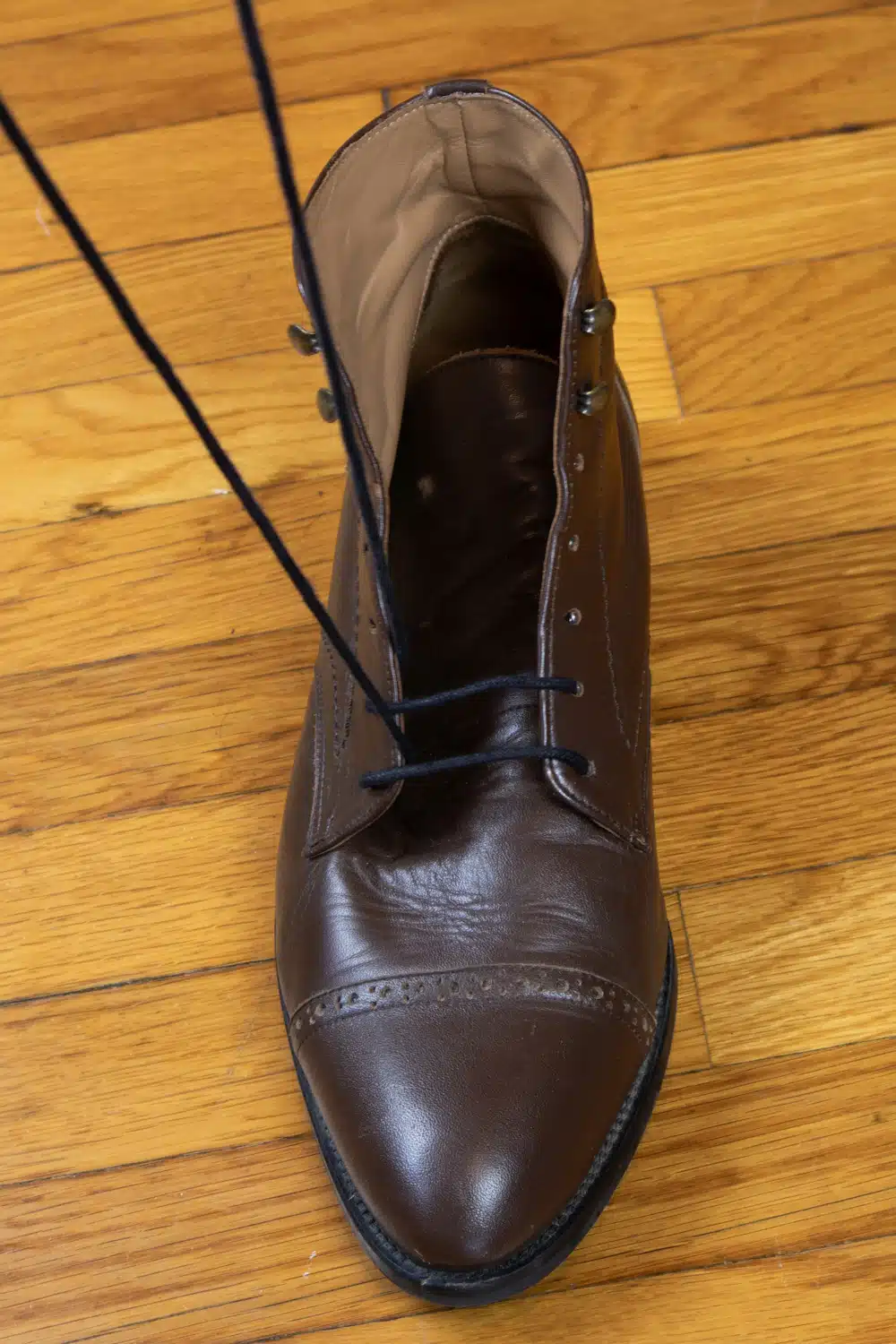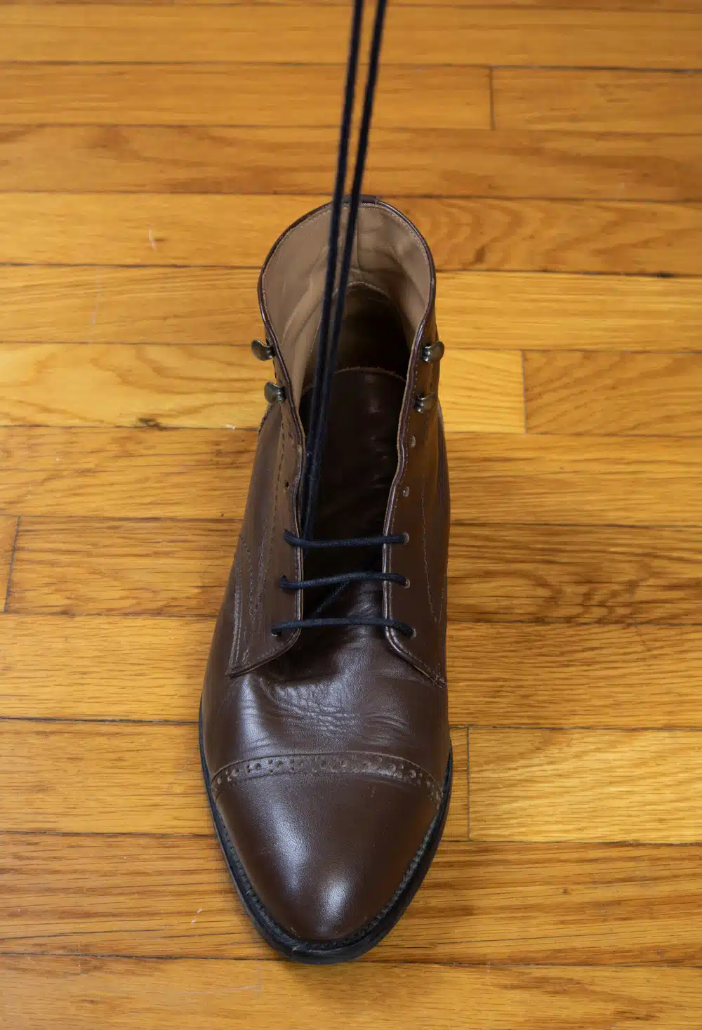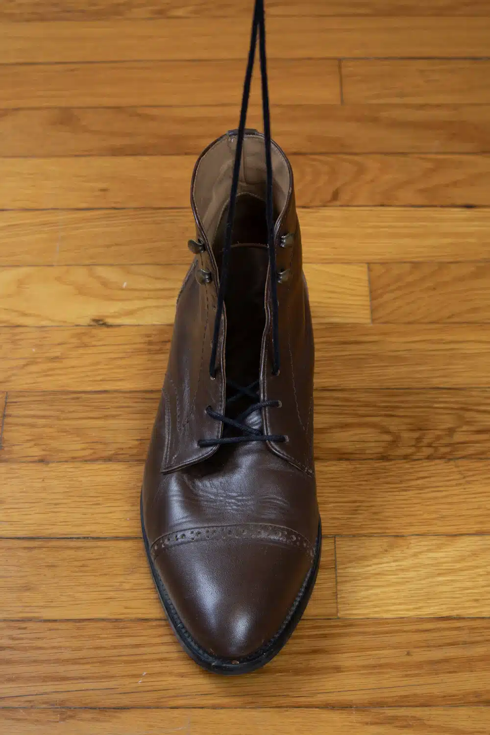 В качестве примера ниже я использую свои парадные ботинки, поскольку у меня нет парадных туфель с открытой шнуровкой.
