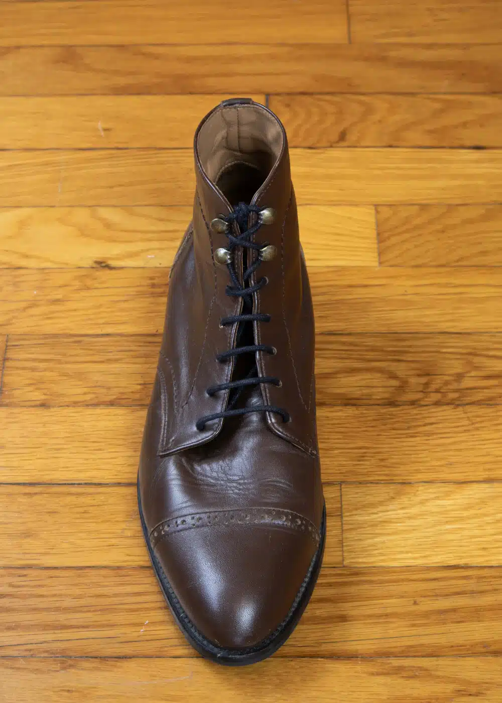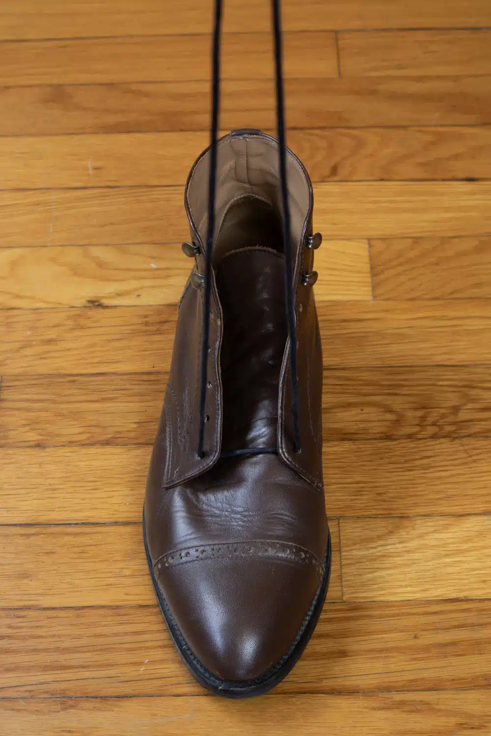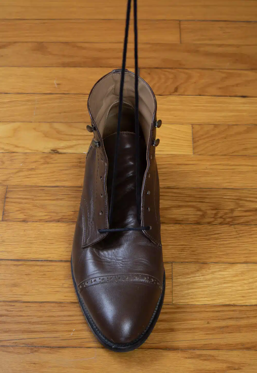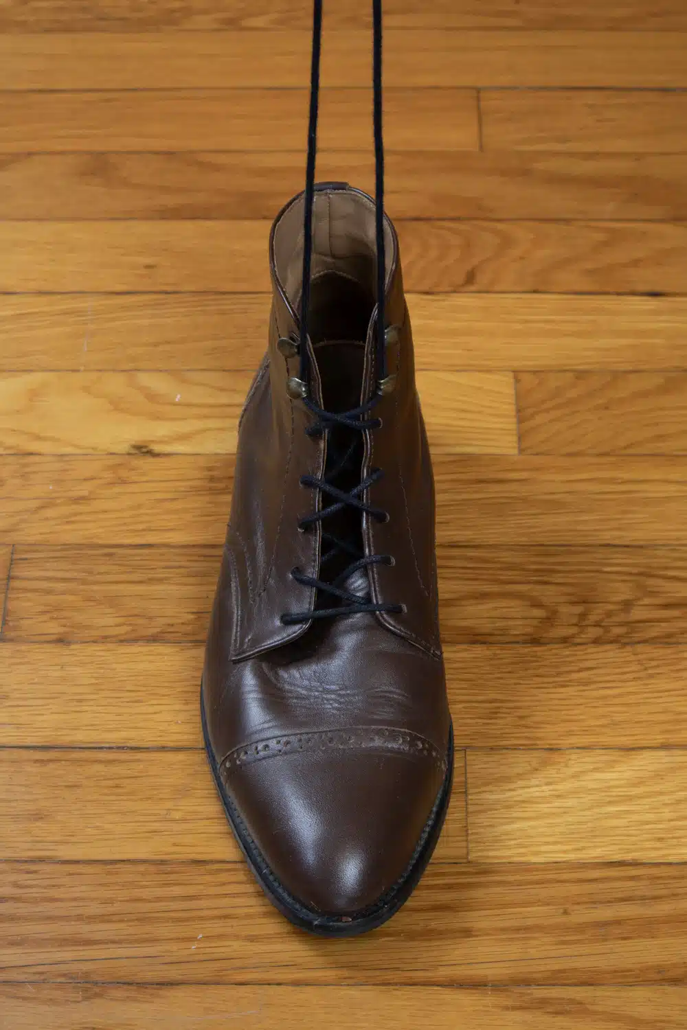В качестве примера ниже я использую свои парадные ботинки, поскольку у меня нет парадных туфель с открытой шнуровкой.
