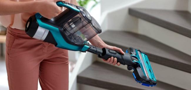 Очень тихий вертикальный пылесос отличается небольшими размерами, но, по реальным отзывам владельцев, обеспечивает высокую эффективность во время уборки благодаря уникальной конструкции щетки. В устройстве реализована тройная телескопическая система, позволяющая сложить устройство для более удобного хранения. Удаление мусора из контейнера очень простое, а фильтр очищается автоматически при открытии крышки. Для уборки разных поверхностей предусмотрено несколько ступеней мощности, также в комплекте присутствует насадка для чистки мягкой мебели. К недостаткам пылесоса покупатели относят маленький контейнер для сбора пыли (0.2 л).