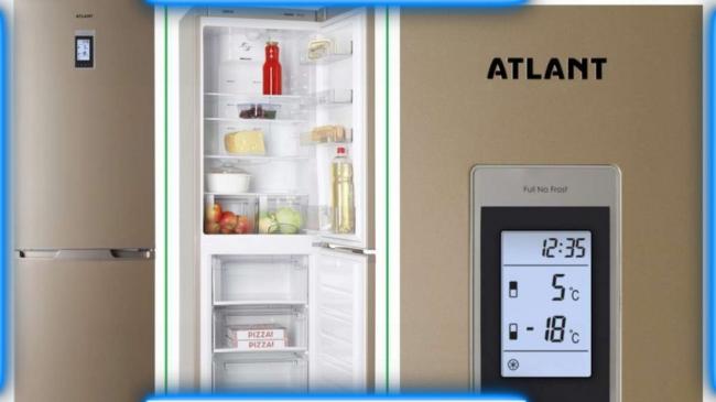 Цифровая система управления холодильником «Атлант» находится либо на верхней панели корпуса, либо на наружной стороне дверцы. Второй вариант более характерен для самых современных, дорогостоящих моделей холодильников. Система управления бывает кнопочной или сенсорной.